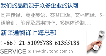 由海外归国学者和资深外语专家共同创办,经重庆市工商行政管理局注册登记的专业翻译机构,总部位于中国上海和北京。新译通翻译致力于为各企事业单位,政府机关,驻华使领馆以及个人提供高质量的笔译和口译服务。 |